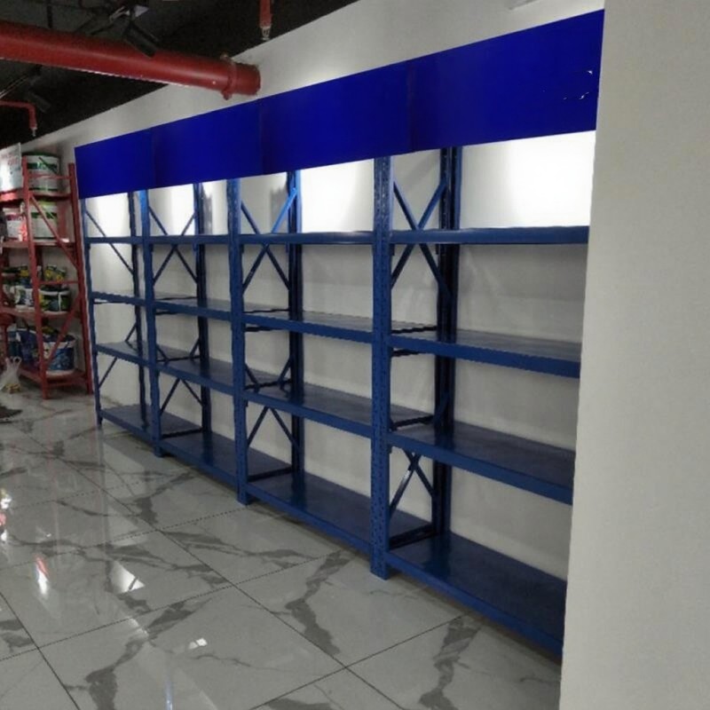 采用優質帶鋼軋制成型,插接方式組裝,主要由立柱、鋼層板組成。貨架的頂層和底層層板與立柱用雙角碼及螺絲連接,使貨架穩固,安裝拆卸方便。鋼層板或木層板上下以50mm為節距上下調節層高,滿足多種使用要求
