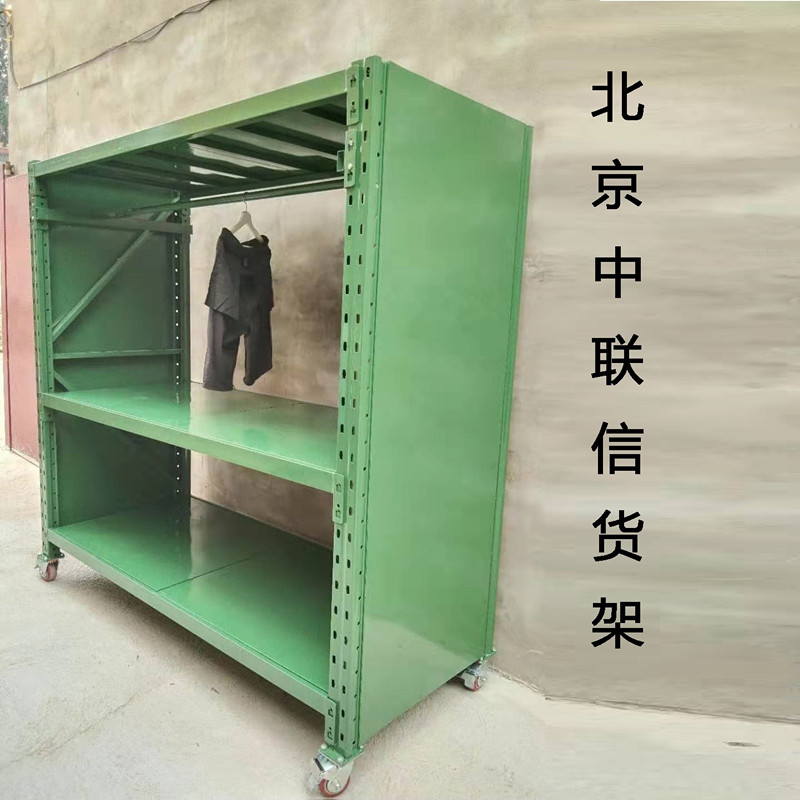 北京中聯信貨架22年生產廠家,可根據需要定做不同規格,不同顏色,不同承重的貨架,可以帶側板,帶輪,帶背網的貨架,可以做成服裝掛架,